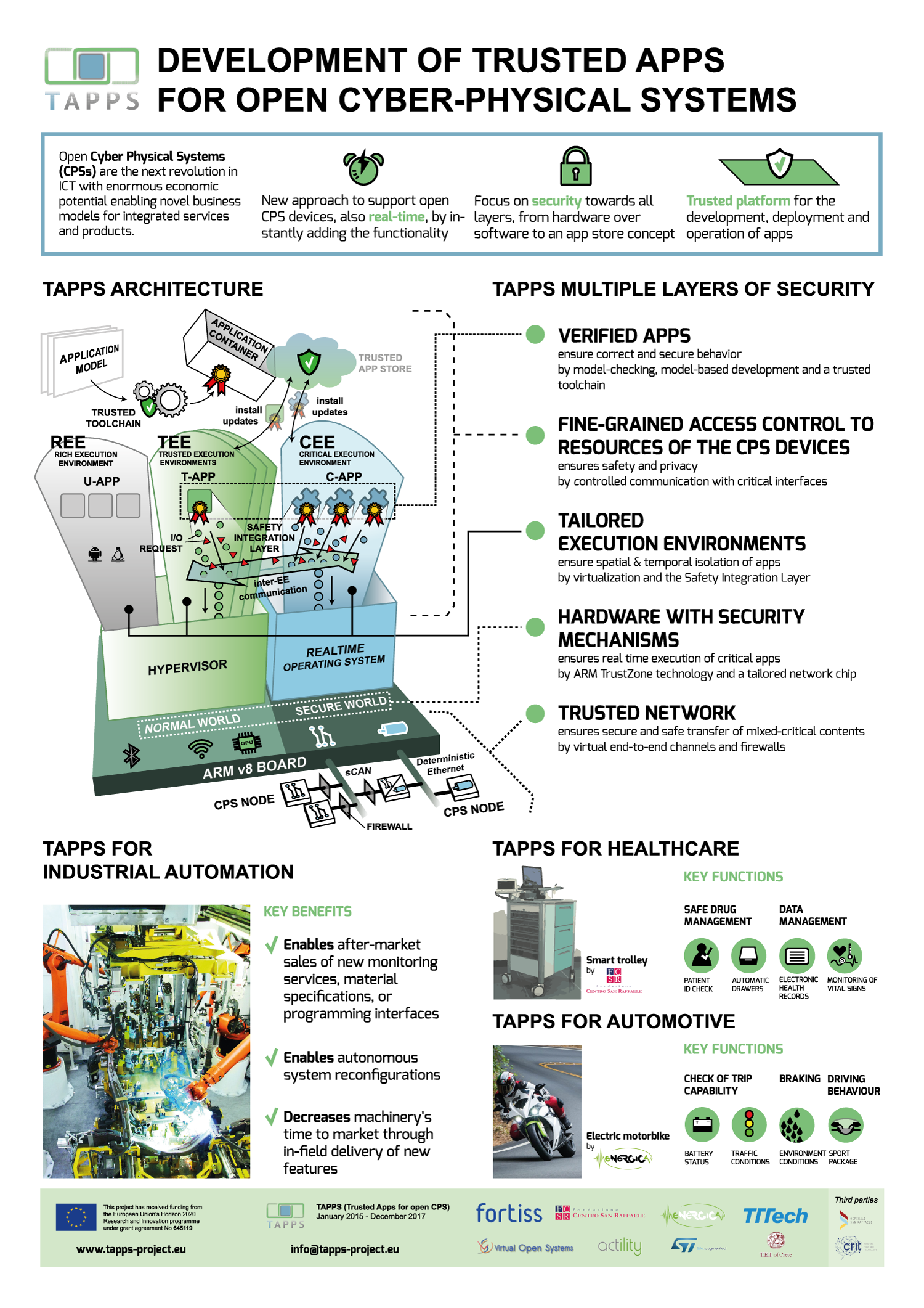 The numerous visitors at the TAPPS poster varied from industry, academia, research up to policy makers. Intensive discussions took place among others regarding the underlying technologies implemented in the project (e.g. distributed communication, mixed-criticality, etc.) and the applicability and usability of CPS in manufacturing processes.